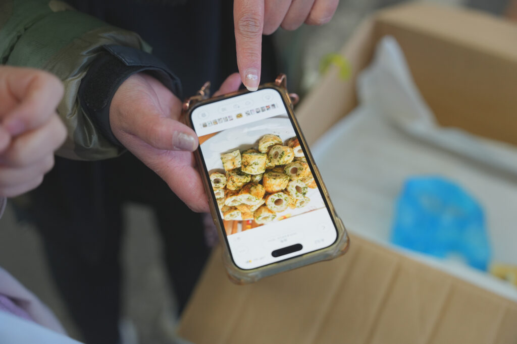 朝市にはその場で食べられるお惣菜も充実しています。小腹を満たしながら市場を歩く時間は、観光というより“生活に入り込む体験”に近い感覚です。