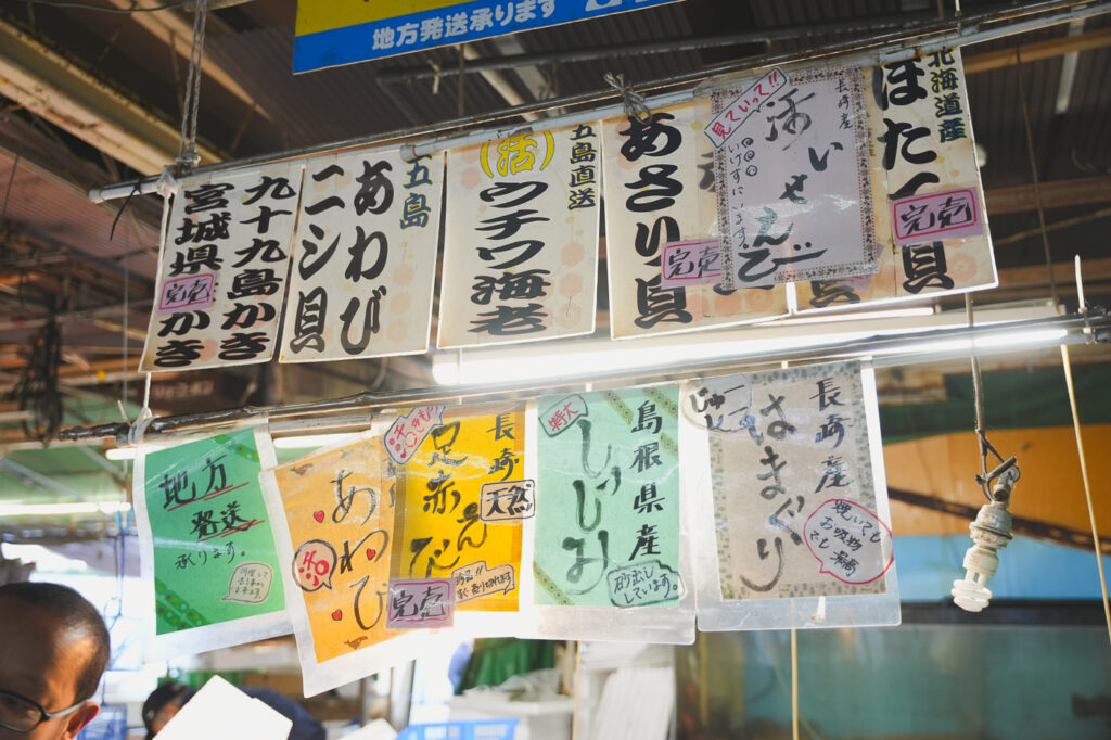 少し歩みを進めると、新鮮な海の幸が並ぶ鮮魚のエリアが見えてきます。