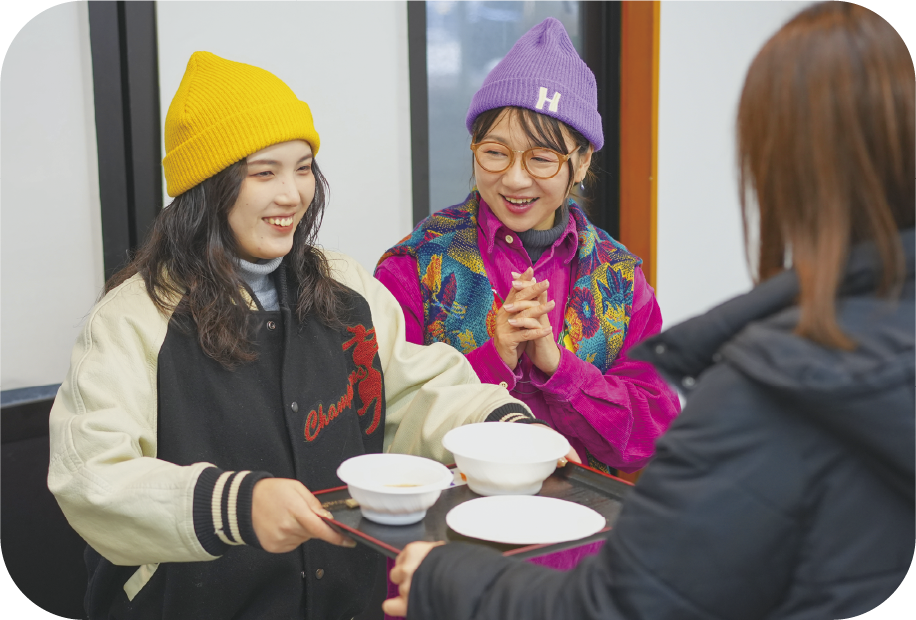 受付ブースにて300円(税込)の基本セット(ごはん+味噌汁)を購入する。購入いただいた方には、オリジナルステッカープレゼント!